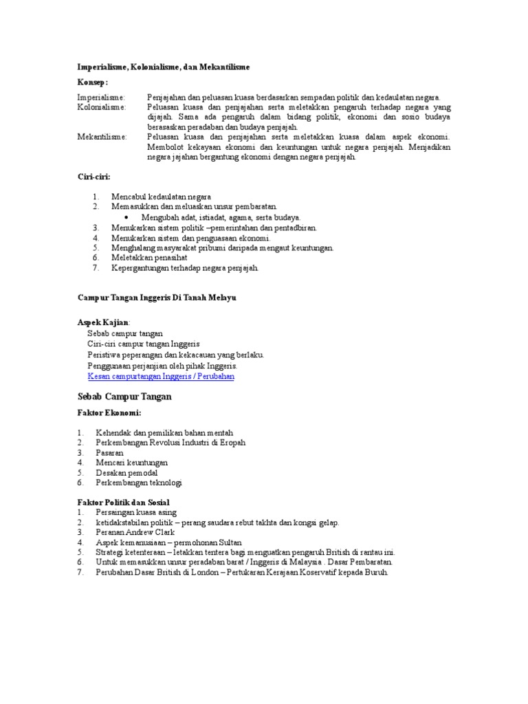 Fenomena sejarah penjajahan adalah satu fenomena yang berlaku di seluruh dunia merentasi masa, merangkumi pelbagai orang yang berbeza seperti hittites, inca dan empayar british. Pelajari pengertian kolonialisme dan imperialisme beserta persamaan dan perbedaannya. Menurut teori huntington, ini merupakan penamatan suatu era yang dikuasai. 0 ratings0% found this document useful (0 votes). Sejarah kolonial, sejarah perang, kolonialisme, perang dunia pertama.